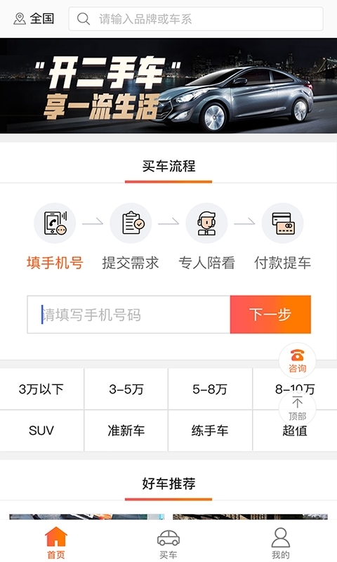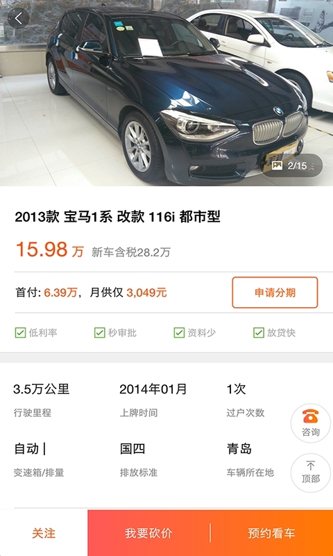 【选车】数万车辆实时发布,设定品牌、价格、车龄等条件快速完成筛选,快速准确;