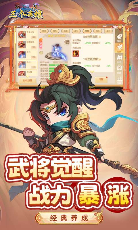 《三个英雄》是一款纯2D卡通写实风网络游戏,以经典《三国》为蓝本,为您呈现精美如画的奇幻世界!在这里,您将遇见造型独特的英雄,体验经典多样的玩法,享受轻松愉快的冒险旅程。我们鼓励玩家团结协作,在健康娱乐的同时,深入感受三国故事的魅力与游戏的深度乐趣。