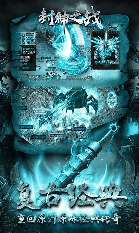 封神之战(新传世高爆)复刻经典端游传奇的巨制,还原战法道三职业,剧情丰富有搞说头,技能特效有讲究,更以装备好打爆率高著称。快快加入吧,与兄弟们联盟合击攻城堡,变身传奇世界指挥官,一起争霸伟业!
