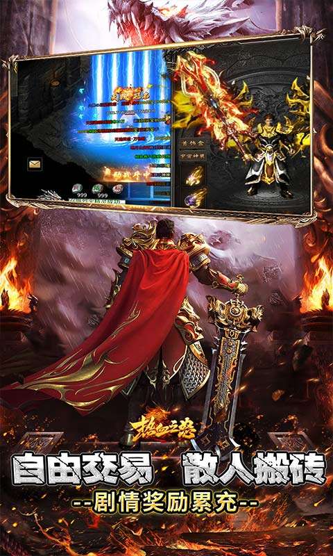 1、每日登录送648代金券,专属剧情服,千件专属,装备保值,稳定更新! 2、装备全靠打,属性屌炸天,一件装备瞬间起飞! 3、上线免费送全屏捡物、自动回收,绝版神技半月弯刀! 4、主打生态,肝帝为王,散人逆袭