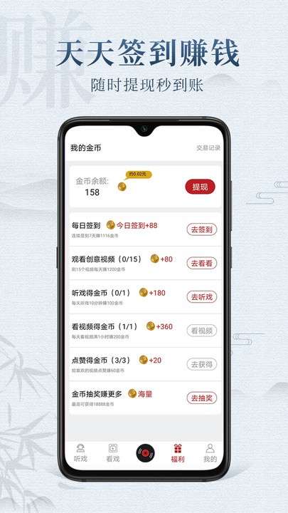 ·【票友福利】每日来看戏、听戏、刷视频即可领福利,轻松省下买菜钱