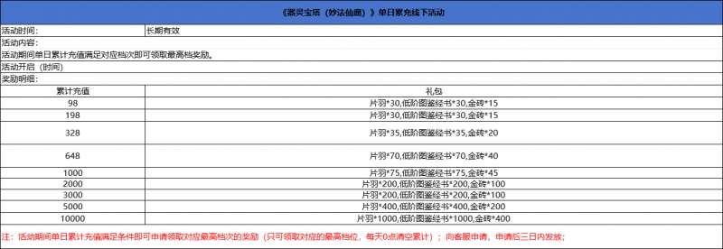活动一:转游福利 活动时间:永久 活动规则:需向客服提交其他游戏充值记录申请,每个账号每个活动仅限参与一次 发放方式:申请后,我们会在两个工作日内发放 活动一:转游大回馈,根据上一个游戏充值总额, 我们将免费提供这期间20%x总充值全额x充值比例(1: 100)的元宝做为转游福利 1、成功创角角色后发放:8% 2、创建角色后第三天发放:5% 3、创建角色后第五天发放:7% 备注:上个游戏充值金额上限最高是10万,超过10万也按照10万来算 活动二:充值转游福利 活动时间:仅限制于开服前7天内才可以参与活动,超过7天活动失效 转游玩家在当前游戏充值: 单日充值1000元可申请:额外100000元宝返利 单日充值3000元可申请:额外300000元宝返利 单日充值5000元可申请:额外500000元宝返利 单日充值10000元可申请:颔外1000000元宝返利 |