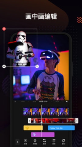 - 【拼贴/画中画】支持在视频中贴入照片、视频或gif,适合制作与偶像合拍、情歌对唱等视频;