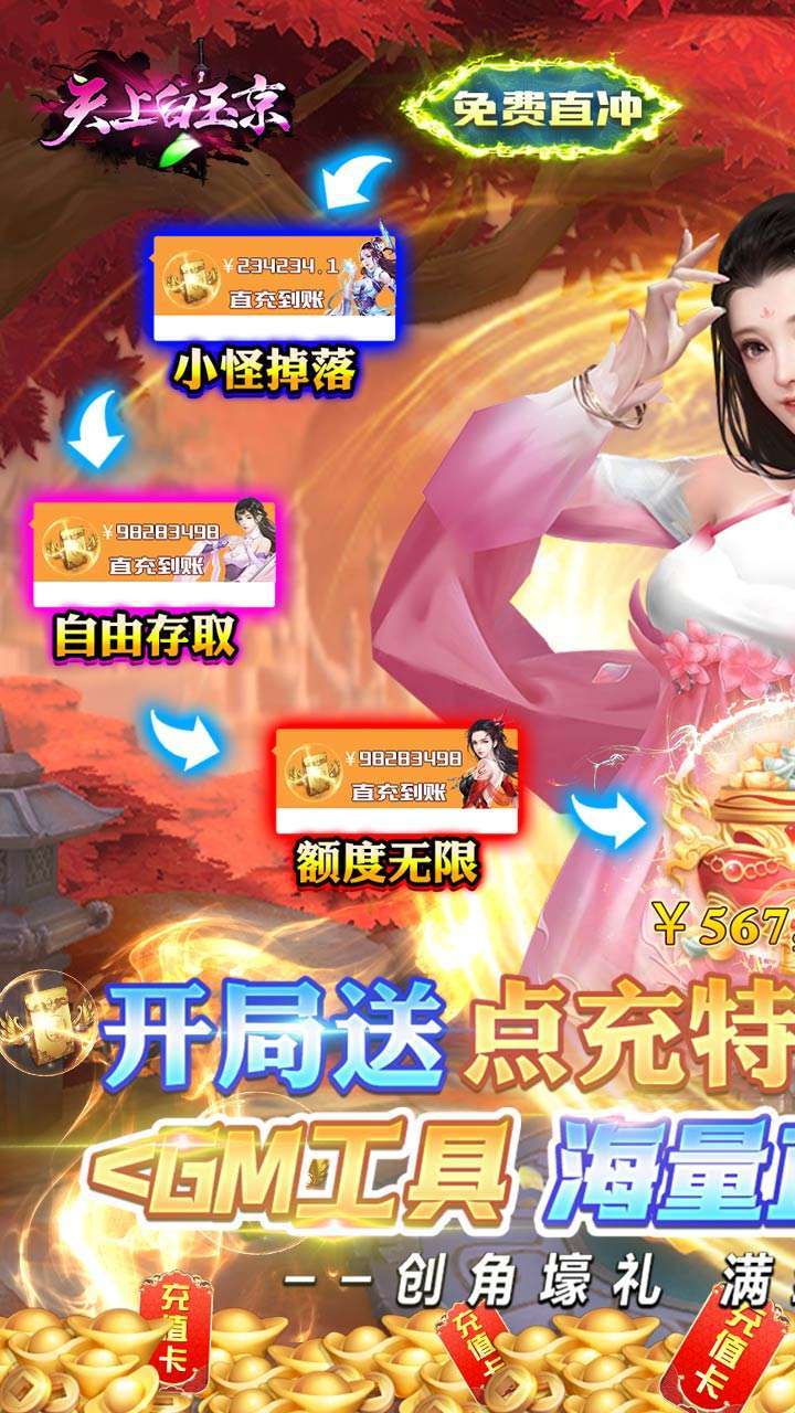 天上白玉京(GM工具点充)开局送点充特权,手速越快,金额越高,无限648元点到手软! 开局送直购币*8888,至尊称号,超值礼包,GM装备全部免费破解,钱包余额可直接兑换直购币! “直升260”58元送直升260级经验丹,送100倍真充,直购币*5000,传奇属性丹·三阶*15000! 全地图自由飞行,跨越千山万水,千人同屏,暴燃仙界大战,华丽百变时装,伙伴灵宠等百变玩法。