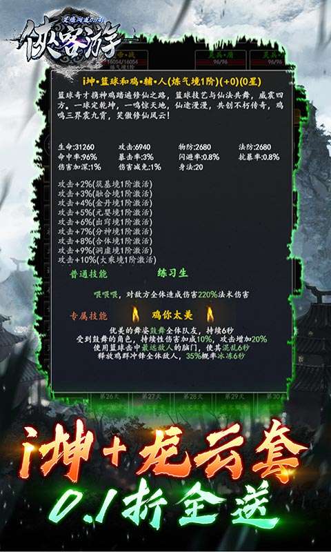 《侠客游(灵墟问道0.1折)》——挂机摸鱼也能卷死全服真仙! 「这修真界,我躺平了也能成圣!」 一介凡人,意外觉醒【文字修仙系统】,从此江湖风云骤变!无需爆肝掐诀,不看脸不氪命,挂机三行墨痕自动修炼:洞府灵气蹭蹭涨,炼丹炼器全托管,渡劫天雷帮你扛!上线即送30亿修为,开局凑齐龙云套装,躺着把炎帝当小弟——本尊闭关996,修为狂飙ICU! 「开局送i坤·篮球和鸡?这仙法保熟吗?」 登录即送逆天豪礼:30000万至尊灵液灌顶,6尊红色法身任选镇压宗门,更有神秘角色【i坤·篮球和鸡】跨次元助阵!此坤非彼坤,左手篮球破心魔,右手鸡鸣震九霄!搭配6666万仙缘、诸神徽章、海量法宝碎片,0.1折价格白嫖6480充值档——别人修仙要钱,你修仙系统倒贴! 「文字卡牌策天命,挂机躺赢笑江湖」 三千大道化作水墨卡牌,指尖轻划抉择因果:是去无极洞天捡上古秘宝,还是蹲炼丹房薅掌门羊毛?七十二般命途随机触发,上一秒金丹碎裂,下一秒轮回转世重修太古玄功!每日在线挂机领招募令,材料多到能填平天劫雷池——本座忙?本座只是用摸鱼的时间,卷死那群闭关千年的老妖怪! 道友,你的肝还好吗?我的早就成仙了