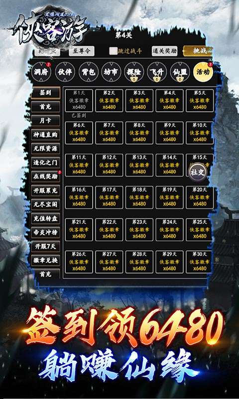 充值比例:1:1000 1、上线福利:至尊灵液*30000万、红色法身任选*6、炎帝*1、i坤·篮球和鸡*1、法身碎片*6666、法宝碎片*6666、诸神徽章*666、修为*30e、龙云套装*1 2、签到领6480侠客徽章,可用来兑换稀有道具和充值 3、每日在线豪礼,6666万仙缘,招募令,海量材料在线可领