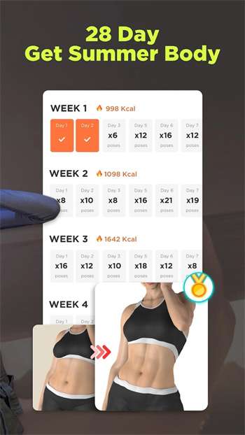 进度跟踪功能,随时查看燃烧卡路里和练习数据,激励自己达到新的健身目标;