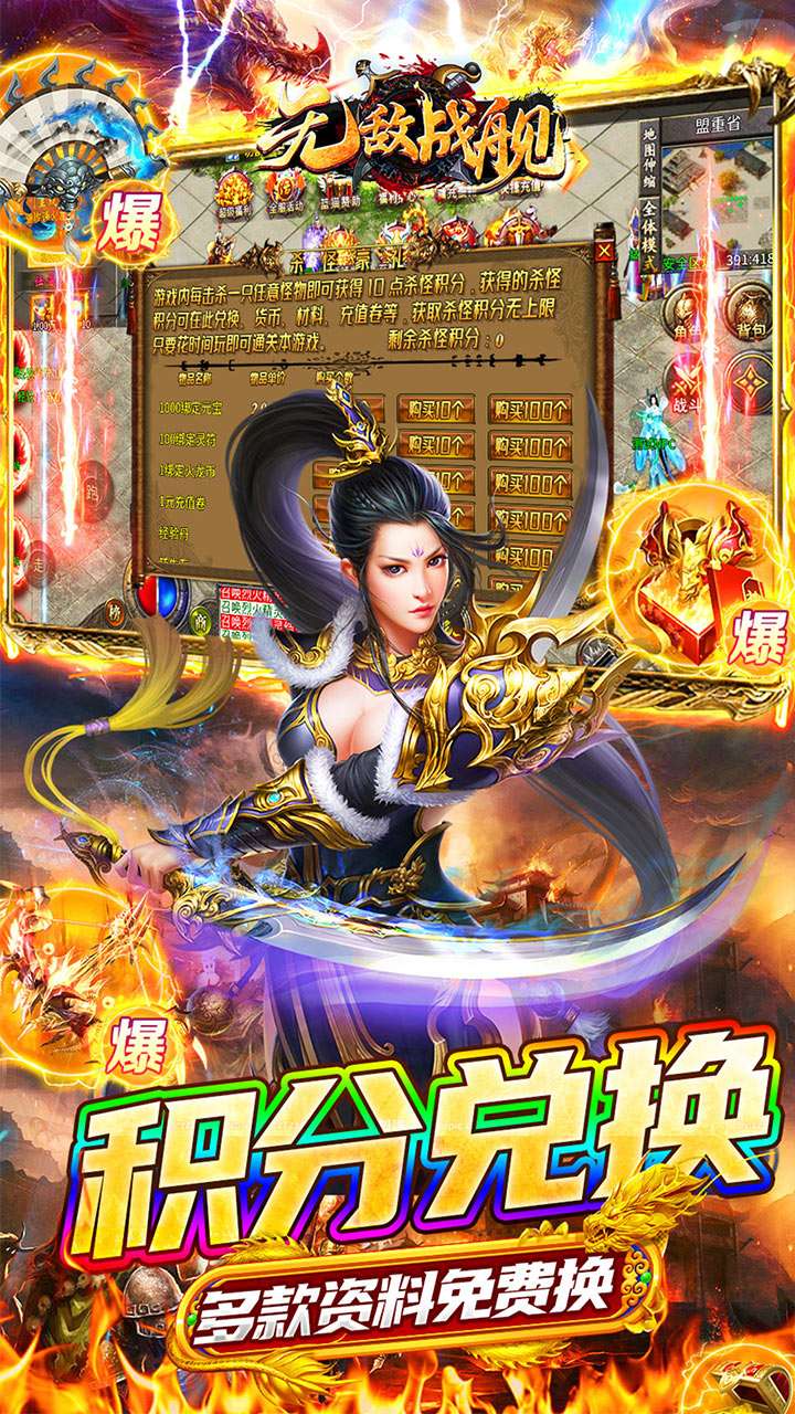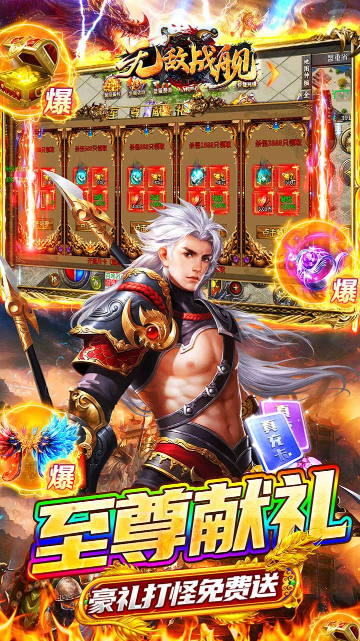 《无敌战舰(狂刀秒切火龙版)》是一款超爽的火龙传奇!上线送切割+500、施毒术、半月弯刀、开天斩、逐日剑法,送自动回收,自动拾取!角色在线、等级转生送提升材料!酷爽福利嗨到爆!超超变传奇,一秒十刀,刀刀切割,享受超爽打金快感,炫酷的技能特效,光柱爆满屏,让玩家享受豪华的视觉盛宴!福利多活动多,散人逆袭为王!大陆多地图多,好玩不无聊!激情对战,热血攻沙,呼朋唤友,一起征战传奇世界!