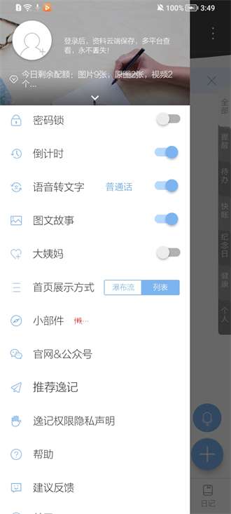 逸记app是一款功能强大的手机记事软件,不仅提供了便捷的记事和记账功能,更注重用户体验设计,通过杂志式排版和多样化的模板主题,为用户打造了一个轻松、有趣的记录空间,其数据同步备份和社交分享互动功能为用户提供了更加安全可靠的记录环境,同时也增添了记录的乐趣和生活的交流,不仅是一款记录生活的工具软件,更是用户记录生活、表达情感的得力助手。无论是工作安排、个人情感还是生活琐事,都能在逸记app中得到完美的记录和呈现。