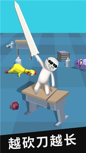 2.操作大刀击杀敌人或破坏场景,让手中的大刀越变越长获得胜利