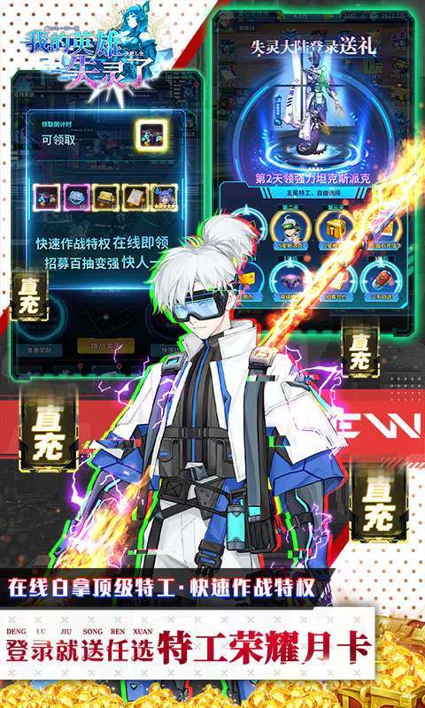 【特工相助】:在线白拿顶级特工、快速作战特权(开启快速战斗解放双手),八日登录再送任选特工,荣耀月卡特权