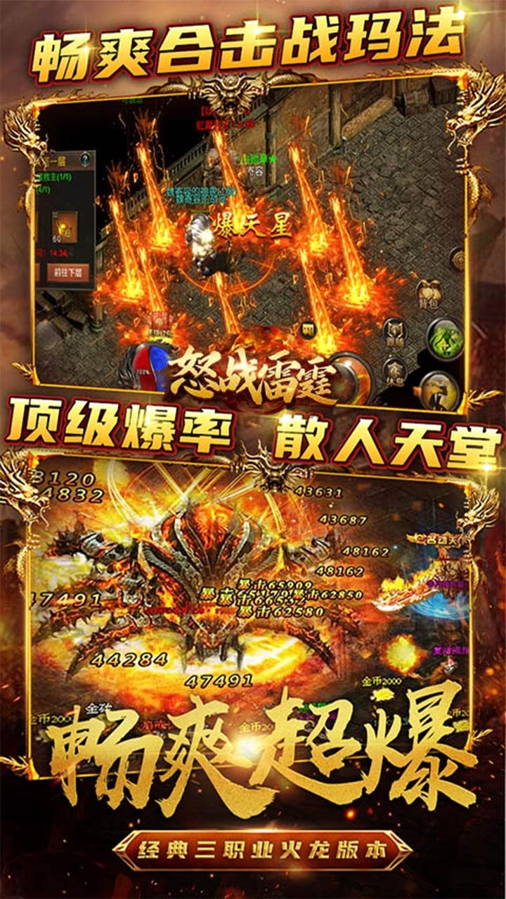 怒战雷霆(双倍返利)是一款经典的热血传奇类手游,最真实的复古传奇,元宝靠打、自由交易、一键回收、小怪爆一切等系列精彩玩法,带你回到往昔热血攻沙的纯正传奇世界!