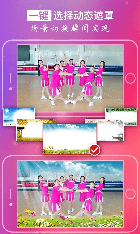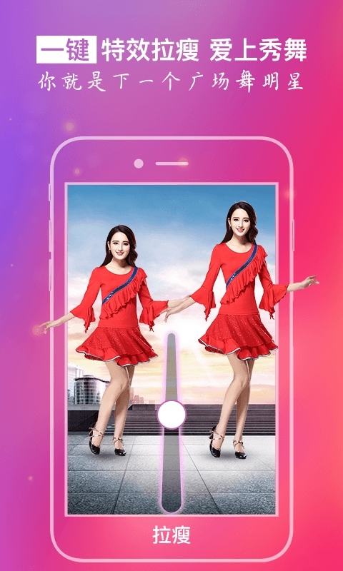1.广场舞爱好者的傻瓜式视频制作软件,手机拍摄舞蹈后自动添加背景音乐,字幕,遮罩等;人人会用~