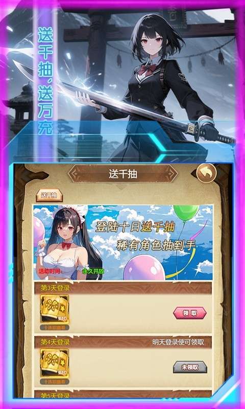 1、创角送百抽,兑换码领百抽, 2、直送VIP11 3、送千抽,领万充 4、上线给橙色角色, 5、神秘商店,全新道具