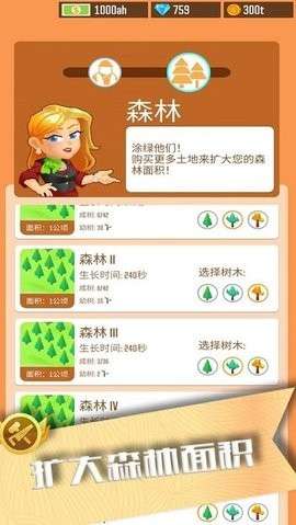 除了采伐树木,您需要雇佣植树工来种植森林,保持可持续性发展,购买更多林地并让它们变成您心目中的绿色。