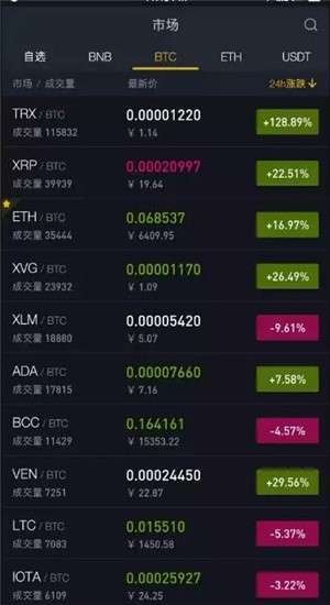 行情:不管是币安币、狗狗币、以太坊等虚拟币都可以在这里看到最新的行情情报;