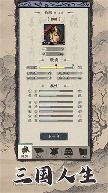 - 【名臣名将】有机会结识和招募各路名臣名将,他们将为玩家提供协助和支持,共同完成人生目标。
