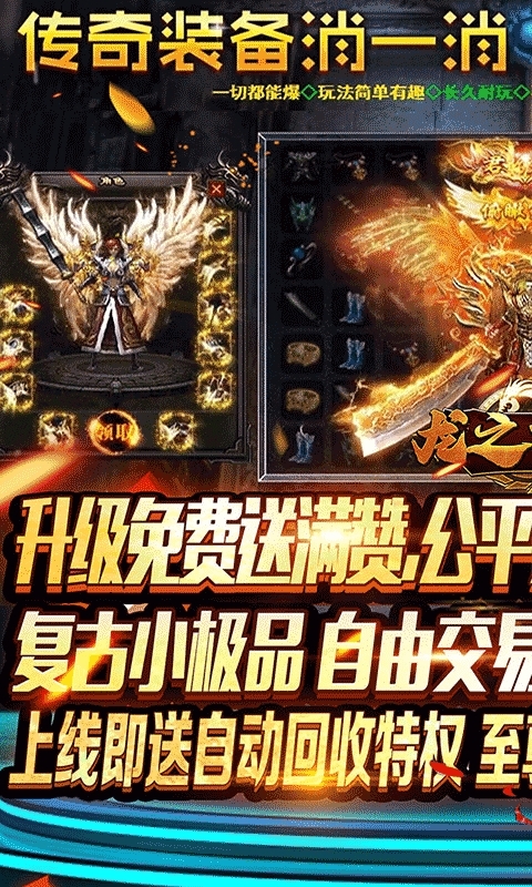 2.充值比例1:10000,装备容易爆,回收秒换元宝;