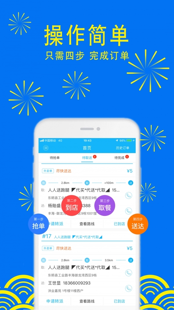人人送骑士是人人送专为配送员量身定制的配送App,服务于广大的加盟商和人人送自营配送团队,旨在帮助配送员更好、更快的为人人送商家及顾客提供配送服务。骑士可以更加方便的接收配送订单、管理订单信息、查看统计数据、在线结算等。如果你下班之后还想多赚钱贴补家用,人人送骑士非常适合你,快来下载吧!