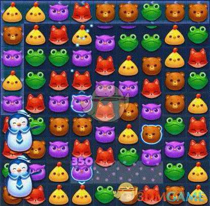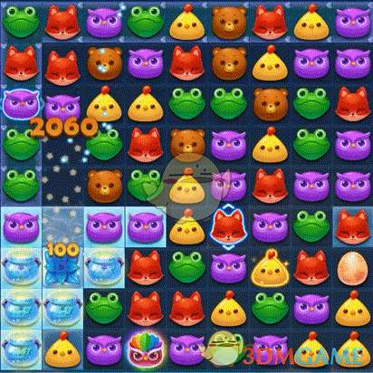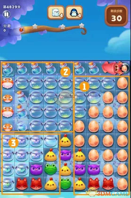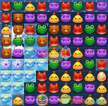 4、第四步:收尾以三消清除为主,消除剩余雪块救出雪块被困的小动物。