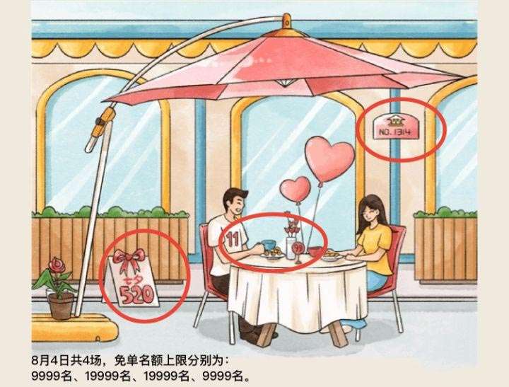 饿了么8月4日的免单是七夕专场,今天官方提供的图片中出现大的数字线索还是比较多的,所以基本可以确定一些事件。下面小编就为大家带来了饿了么8.4免单答案,饿了么8.4免单时间分享,还不知道的小伙伴们快跟小编一起来看看吧!