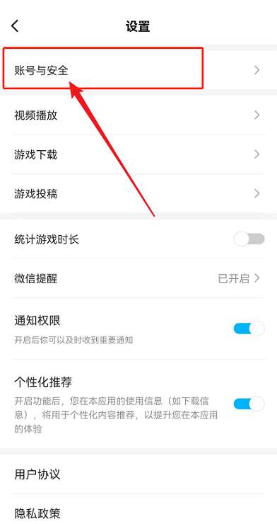 2、然后在设置中,点击【账号与安全】(如图所示)。