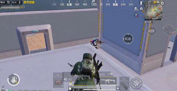 当特种兵抢先拿到隐藏房间中的空投级大宝箱后,可以观察人较少的密室仓库,利用弹射炮飞到密室仓库门对面的小房间顶。