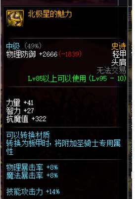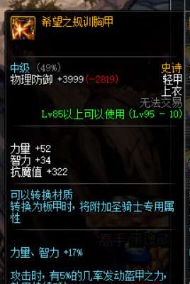 套装效果:力量、智力+17%,攻击时有5%的几率发动盔甲之力效果持续5秒。
