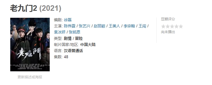 他来了他来了他终于来了!最期待的老九门第二季10月开机,期待值瞬间拉满!看第一季的时候就热血沸腾,疯狂磕赵丽颖和陈伟霆,希望第二季还是原班人马,如果不是的话,希望可以青出于蓝胜于蓝,期待开播…