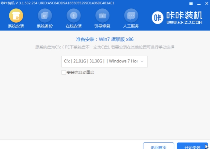 8、将目标分区改为“磁盘C”,点击“开始安装”。