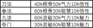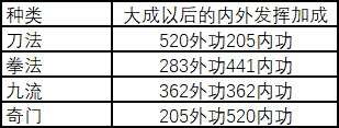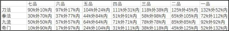 不同类型的功法在不同的品阶时造成的伤害比例也不同:(修习到大成后的属性)