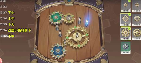 4:方位7在放置一个中型齿轮,然后最后的方位6在放置一个双层齿轮就好了。