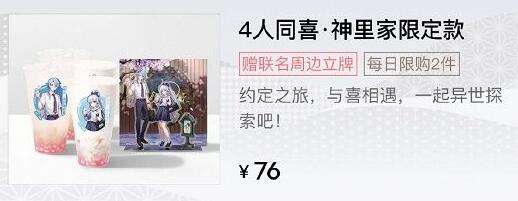 3、单笔订单购买2箱限定款果汁茶,加赠「喜茶×原神联名徽章」1对及「喜茶×原神联名限定亚克力立牌」1份。