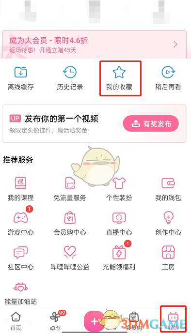 1、打开哔哩哔哩,点击我的,进入我的收藏。