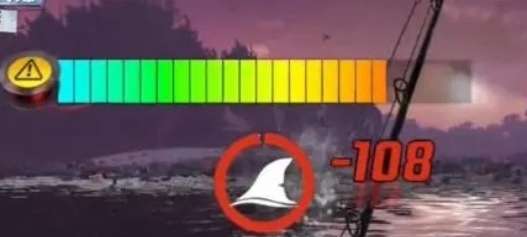 3、当出现奇珍鱼的提示后,慢慢收紧鱼线,蓄满怒气值摆动鱼竿。