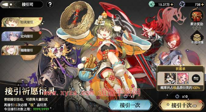 2、玩家需要完成100次接引来开启祈愿功能。每次可以同时选择两位衍灵,在接引到极品质的衍灵时,处于祈愿单中的衍灵获得概率将各提升至30%。这里建议大家只抽一个心愿,因为第二个容易歪。