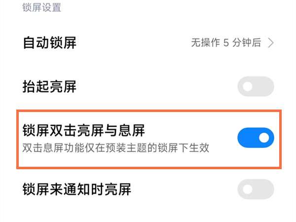 2、将锁屏双击亮屏与息屏的右侧开关开启即可。