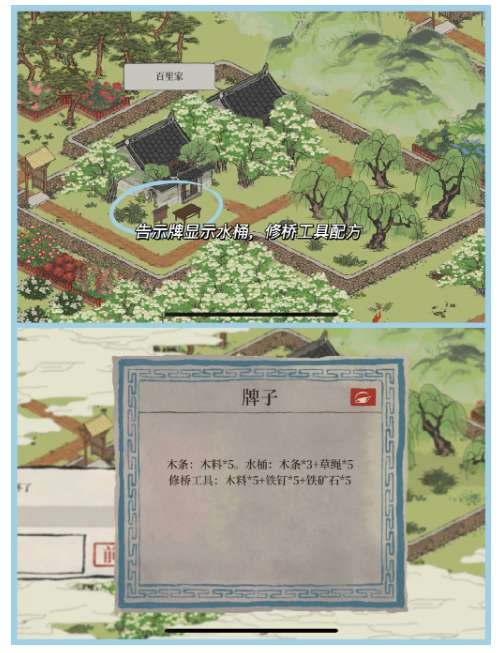 1、修桥工具配方(牌子上是有提示的,仔细看看)