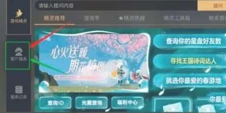 在精灵系统中,找到并切换到客户服务界面。这一界面提供了游戏内的各种帮助和指南。