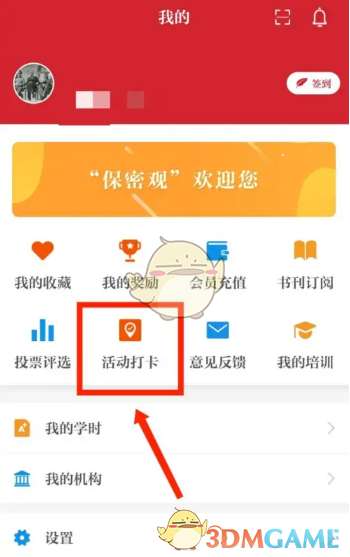1、在保密观app右下角“我的”界面点击“活动打卡”