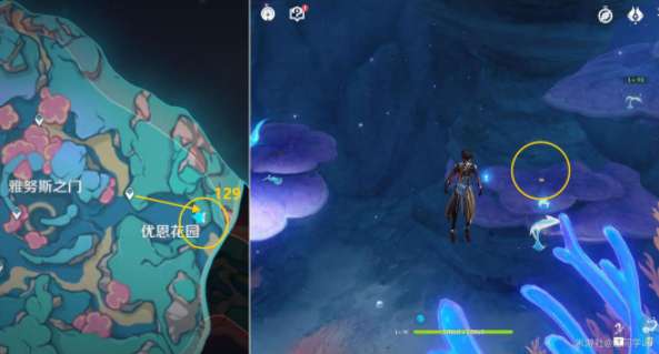 4、第129个,在【旧日之海】【优恩花园区域】紫色蘑菇中间。