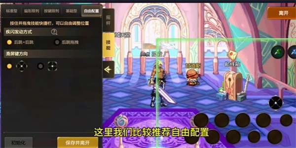 4、这里建议选择自由型,玩家可以自由拖动按键位置。(仅能在右侧绿框区域移动)