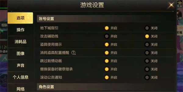 1、进入游戏以后,在游戏主页打开设置菜单,进入【游戏设置】选项。