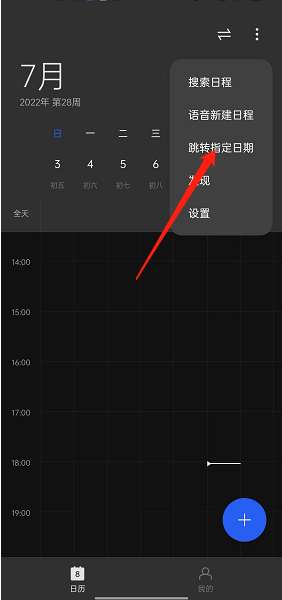 2、选择上方的三个点,然后选择【跳转指定日期】。