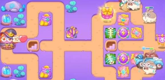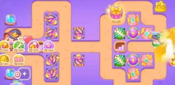 4、继续在右侧补充多个蝴蝶结和水晶炮塔,继续清理道具。