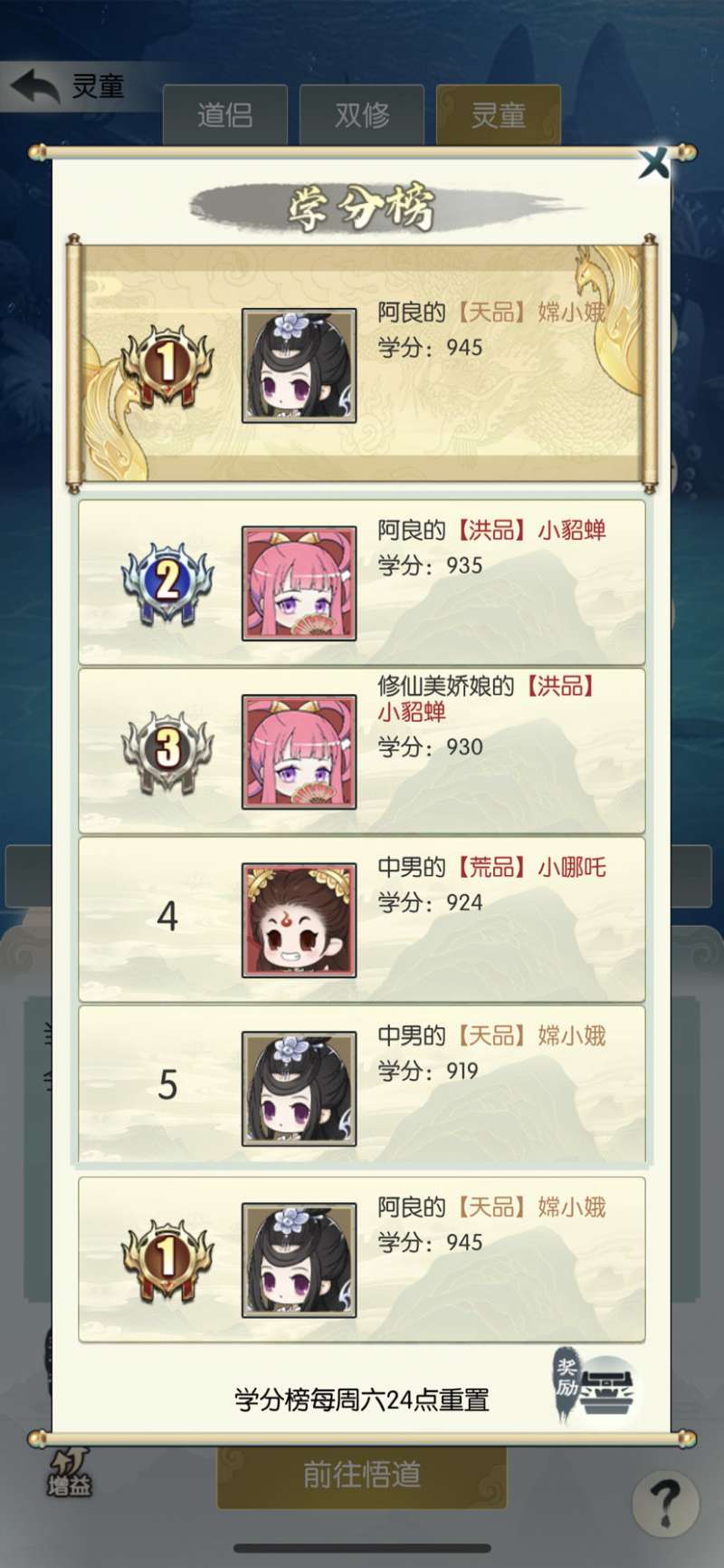 2 懂得放弃 当使用了悟道法球一两天后,看到别人的灵童学分领先不少,自己在不付出仙玉的情况下争排名无望,那么去下面看看前十是多少分,自己还需要几个悟道法球能保住前十,如果奖励大于使用的法球,那么只需付出保住前十的法球就可以了,如果前十竞争也激烈,那直接摆烂不用法球了。(就算你吃满了法球也争不到前三就不要用了,这叫止损,留着下周再冲)。