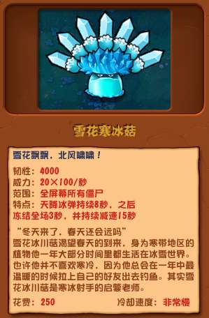 植物大战僵尸杂交版雪花寒冰菇介绍