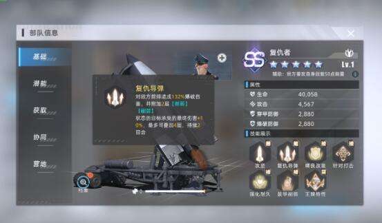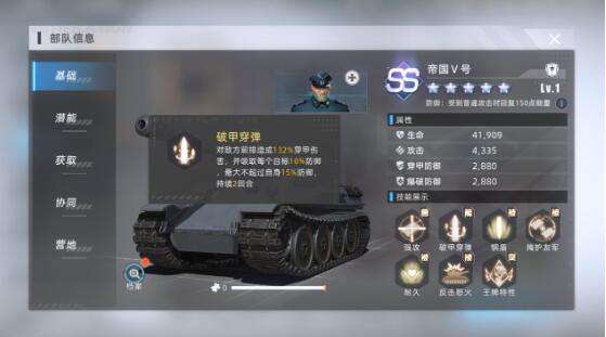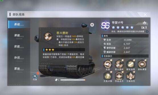小贴士:除了部队本身的强力技能和优势互补外,更重要的是相互的协同关系搭配。帝国Ⅵ号+复仇者同时上阵会有增伤效果和附加技能,毫须+常绿树Ⅰ号同时在场可以增加免伤和回复,美洲狮+帝国Ⅴ号是免伤和能量回复。