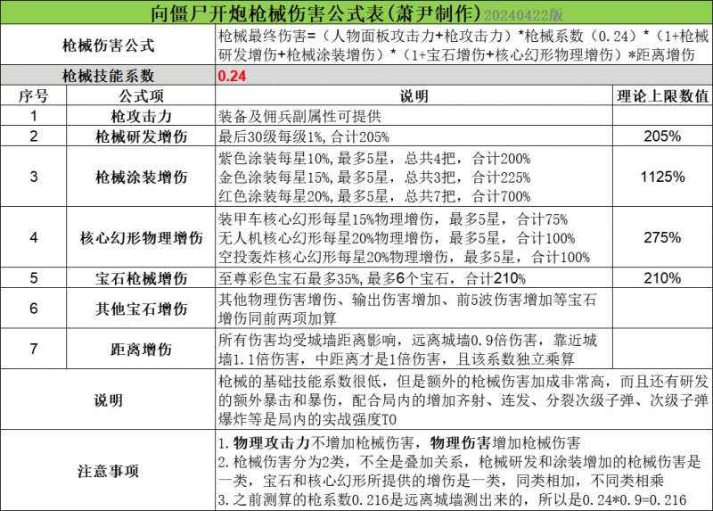 这个表旧了,两个月以来又出了6个新的枪械皮肤,上限还在提升。表上已经写得非常详细,看下注意事项,枪械只吃枪械攻击力,不吃物理系攻击力,变成元素子弹后也是吃枪攻击力,不吃火雷冰系攻击力。注意区分物理系攻击力和物理伤害增幅宝石的区别。