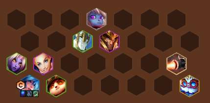站位方面就根据图中站位,防灵风即可,后排扎堆是因为琴女的技能有攻速加成,可以让后排最大化自己的输出。在海克斯的选择上,优先战力海克斯,因为阵容是三费卡主C的,阵容成型比较快,但是强度肯定比四费五费主C的低,所以需要海克斯来优化战力。其次就是装备类的。